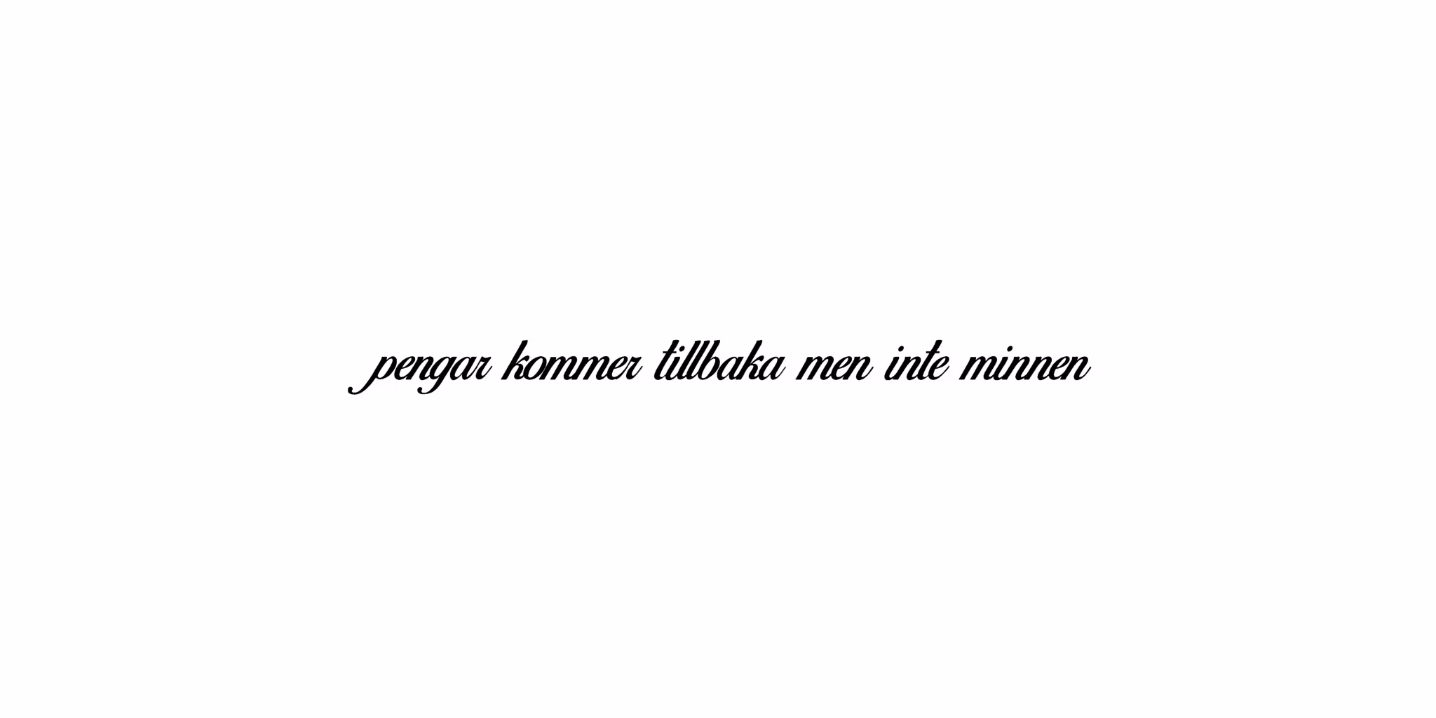 Mått: 111 x 9 cmText: pengar kommer tillbaka men inte minnenTypsnitt: birds of paradiseFärg: rgb(0, 0, 0)