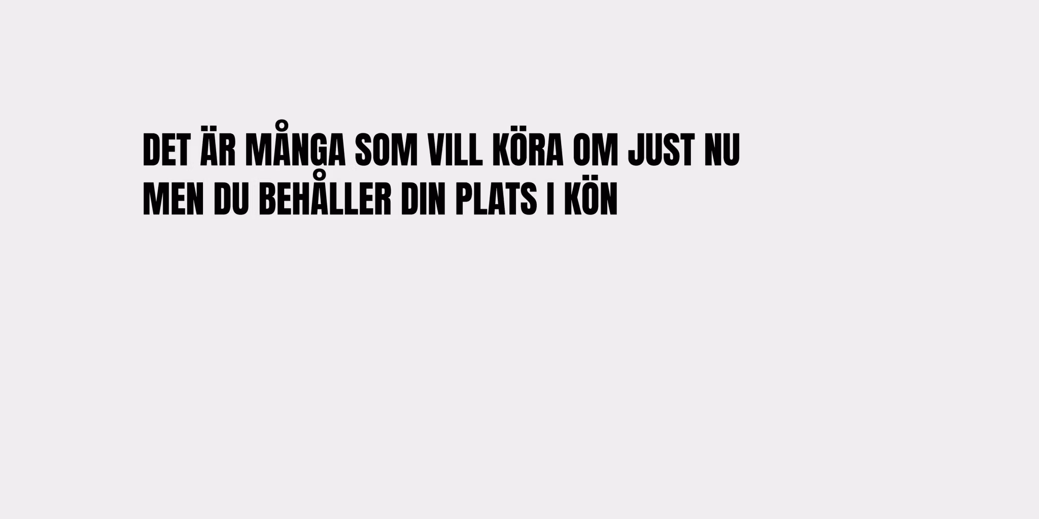 Text: DET ÄR MÅNGA SOM VILL KÖRA OM JUST NU MEN DU BEHÅLLER DIN PLATS I KÖN