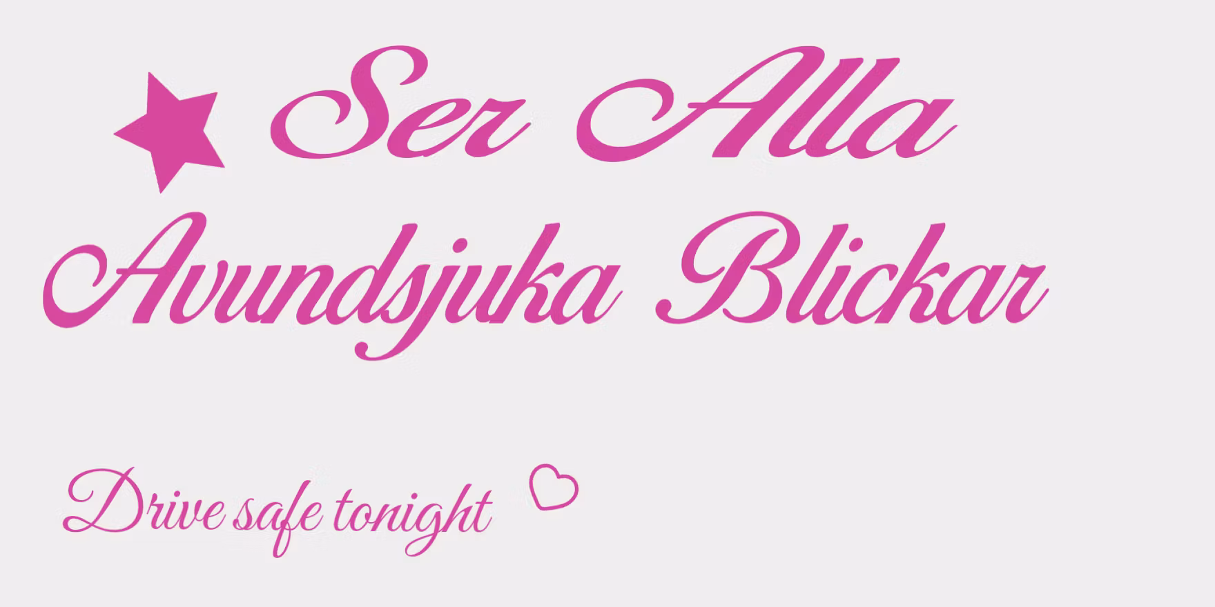 Mått: 60 x 30 cmText: Ser AllaTypsnitt: birds of paradiseFärg: rgb(204, 51, 153)Text: Avundsjuka BlickarTypsnitt: birds of paradiseFärg: rgb(204, 51, 153)Text: